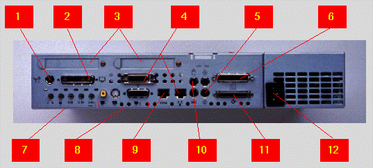 - 2. Monitor Connector: High-resolution (1280x1024) and low-resolution