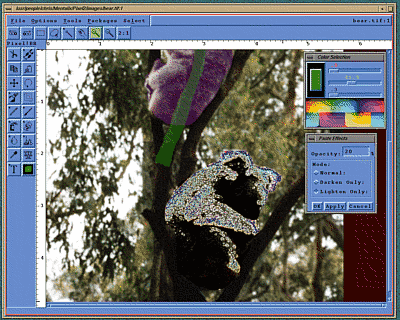 The PixelBrush toolbox in PixelFX lets you manipulate this koala bear so that he doesn't blend into the background.