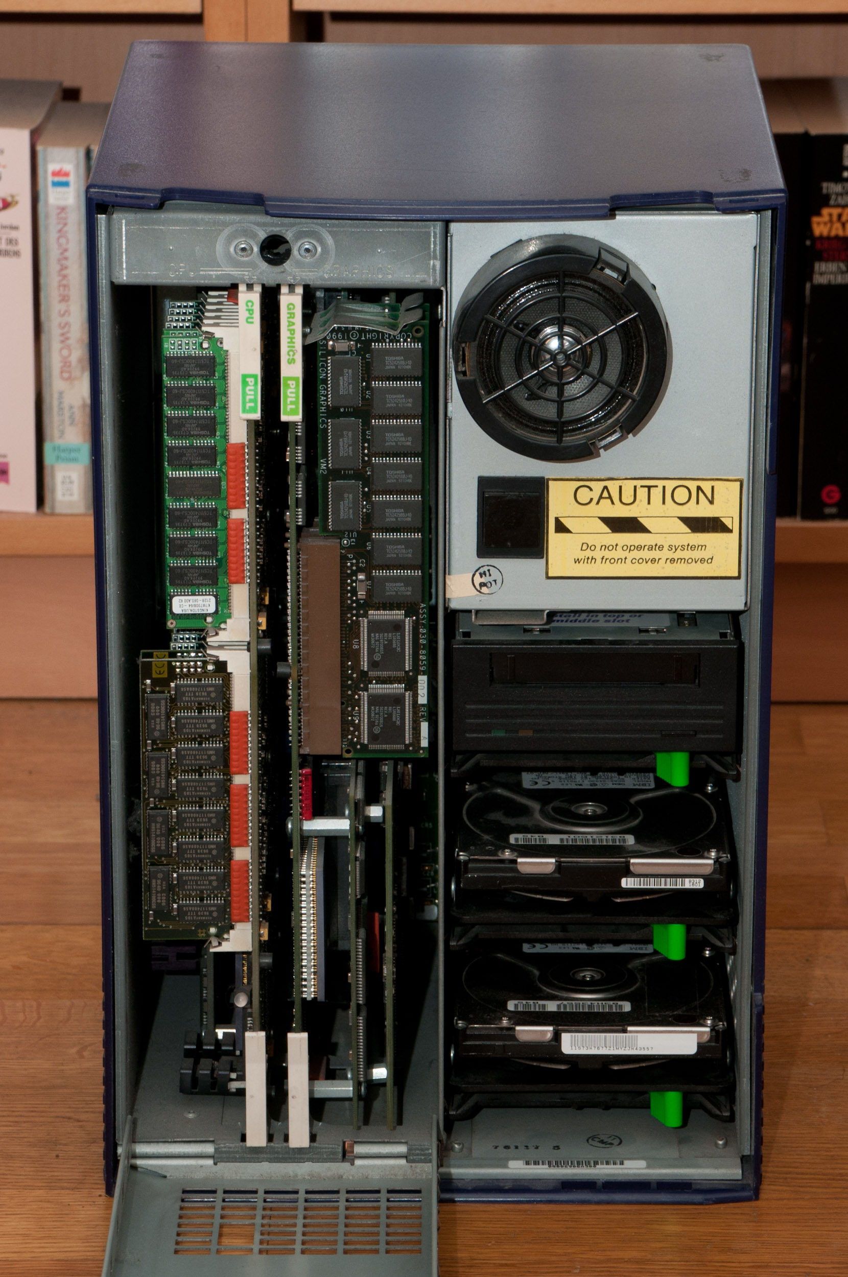 Cardcage door opened revealing the CPU and GFX boards.