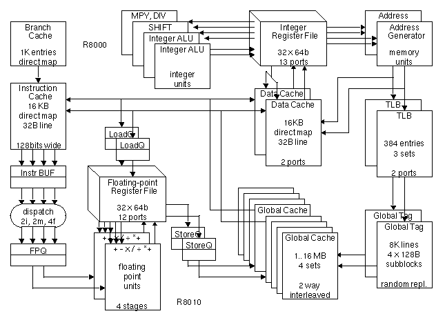 between the on-chip cache and the external cache. Furthermore, R8000