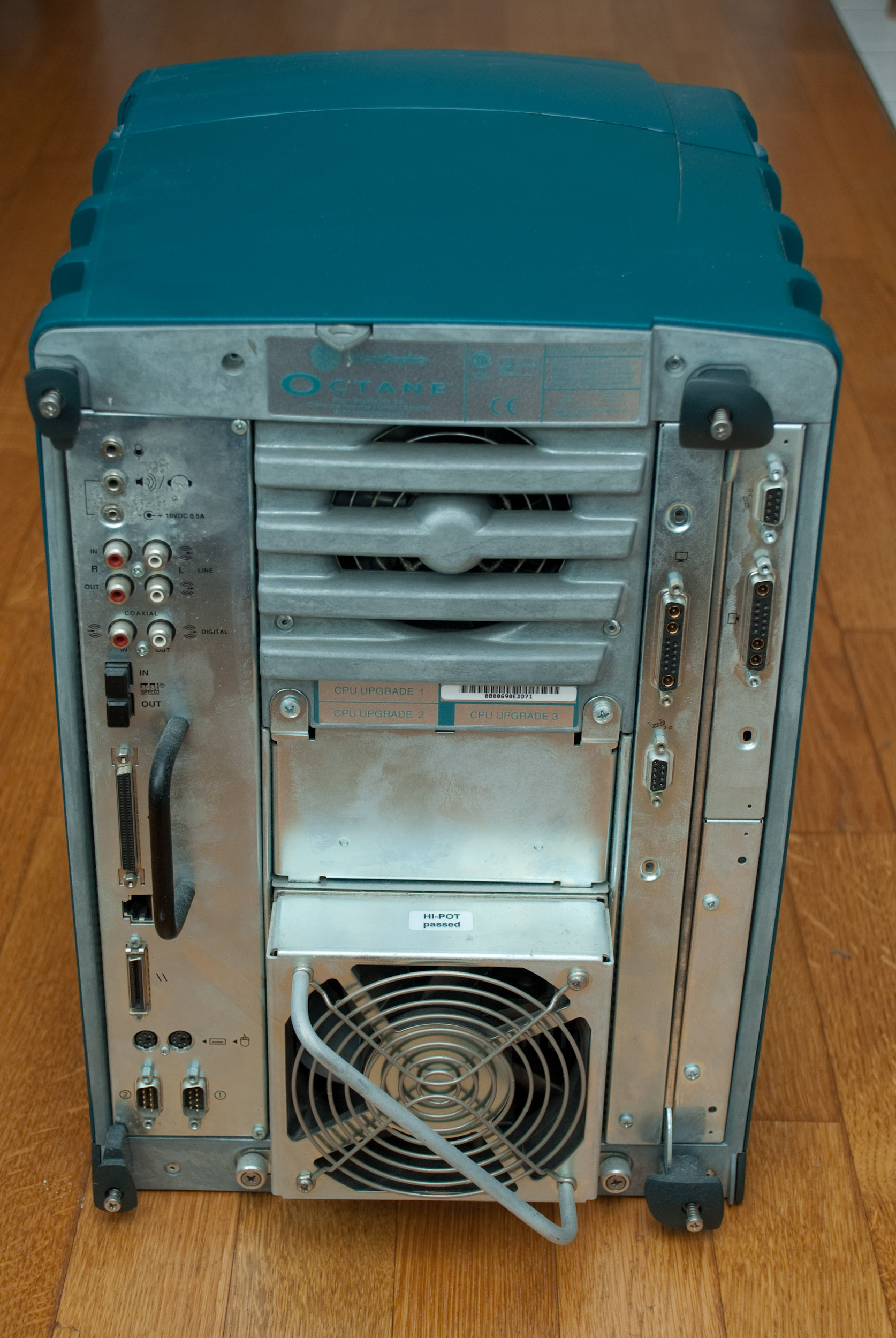 The original Octane skins were green. It did feature the classic Silicon Graphics logo along with the cube. Later models were still green but did feature the new SGI logo design on the front. The same design was used on the Octane 2 which is blue in color.