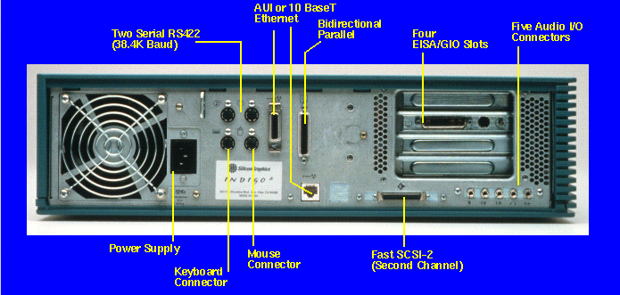 We've also given Indigo2 unrivaled expandability. So you can choose your configuration. Four industry standard EISA slots or two EISA slots and two high-performance GIO slots are at your disposal. An assortment of industry standard I/O, such as AUI and 10 BaseT Ethernet, as well as two serial ports, a parallel port and five audio connections make Indigo2 comfortable as a stand-alone system or in a networked environment. Compliance with industry standards gives Indigo2 the ability to integrate into a multivendor environment. And Indigo2 can read and write Mac and PC files.